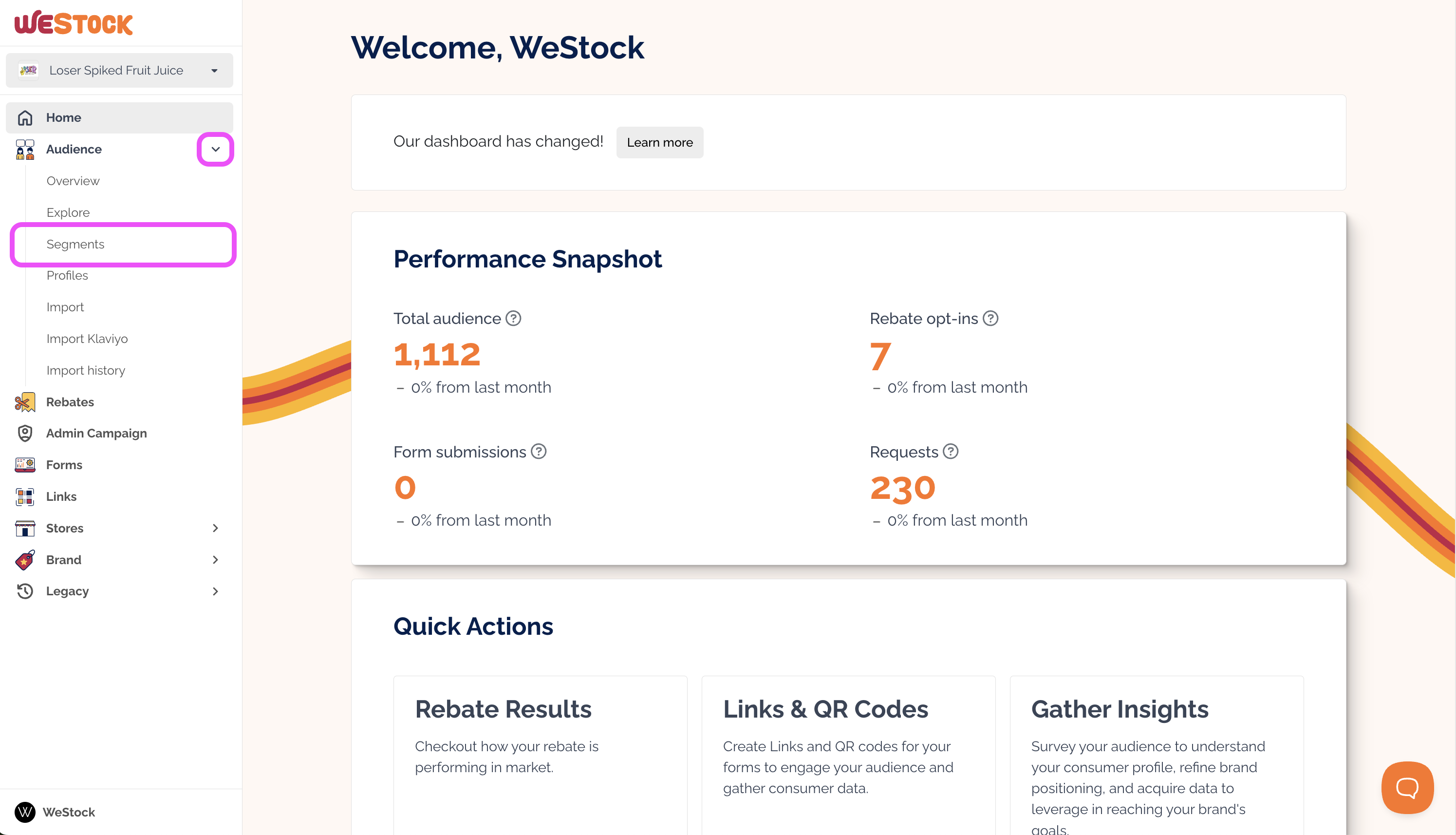 - From your Dashboard, click the dropdown arrow next the Audience tab on the left side menu. Click Segments.