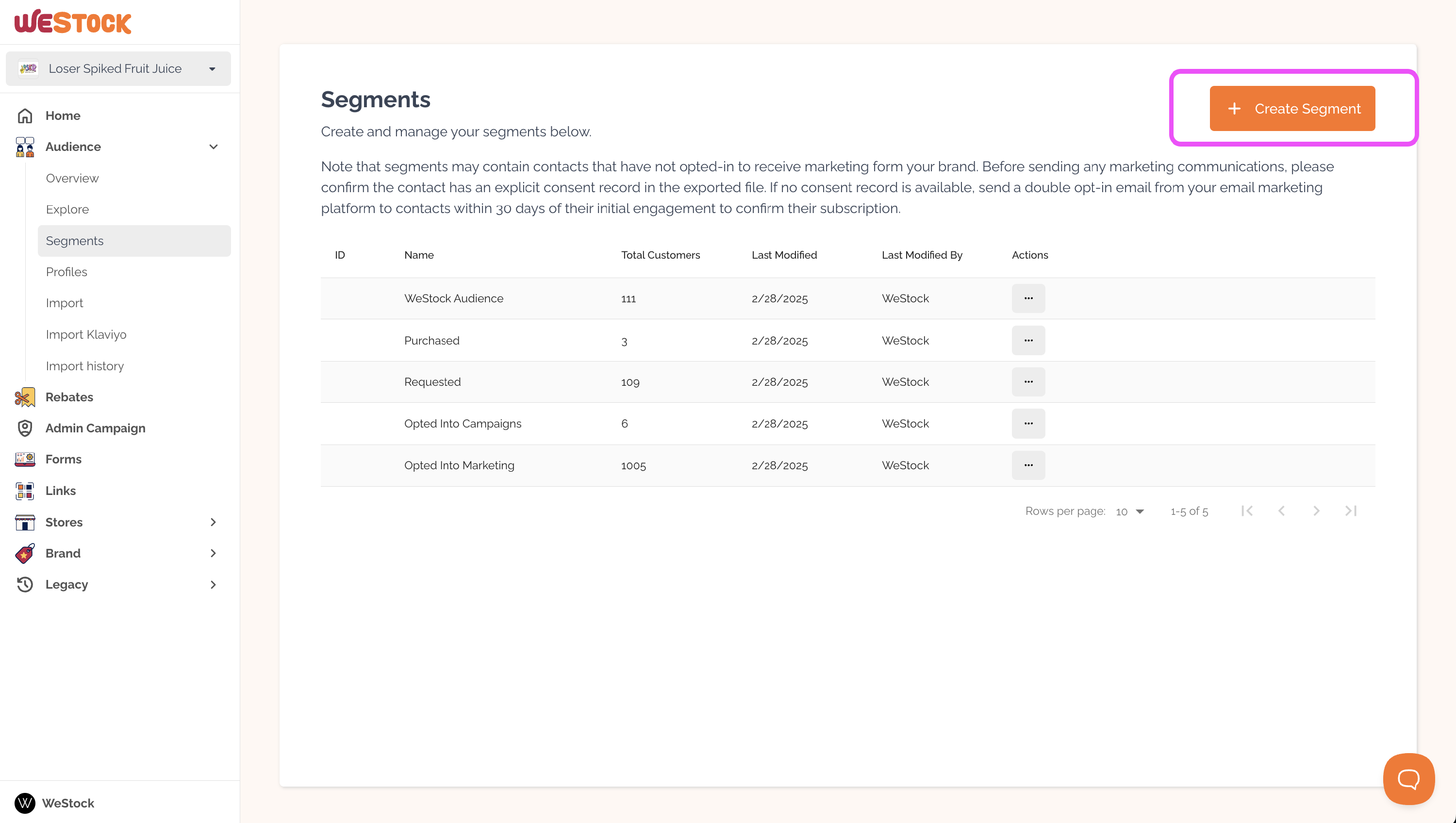 Note that segments may contain contacts that have not opted-in to receive marketing from your brand. Before sending any marketing communications to these segments, please confirm the contact has an explicit consent record in the exported file.