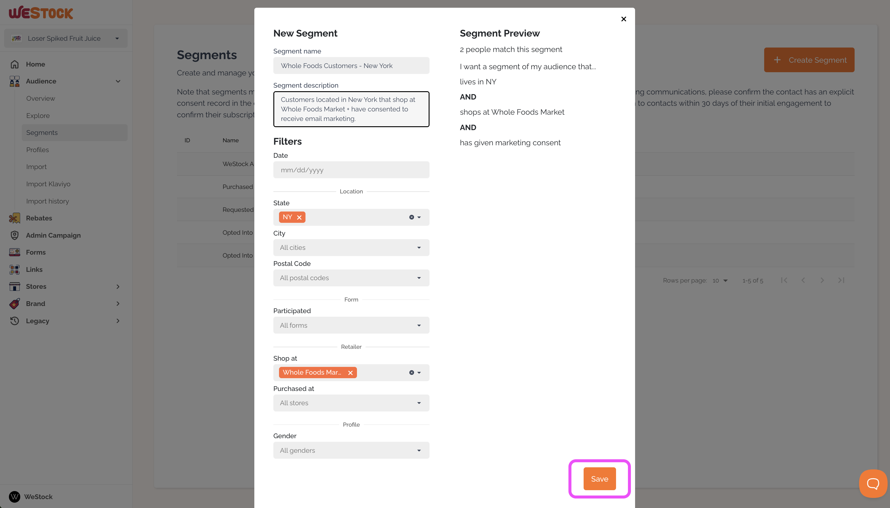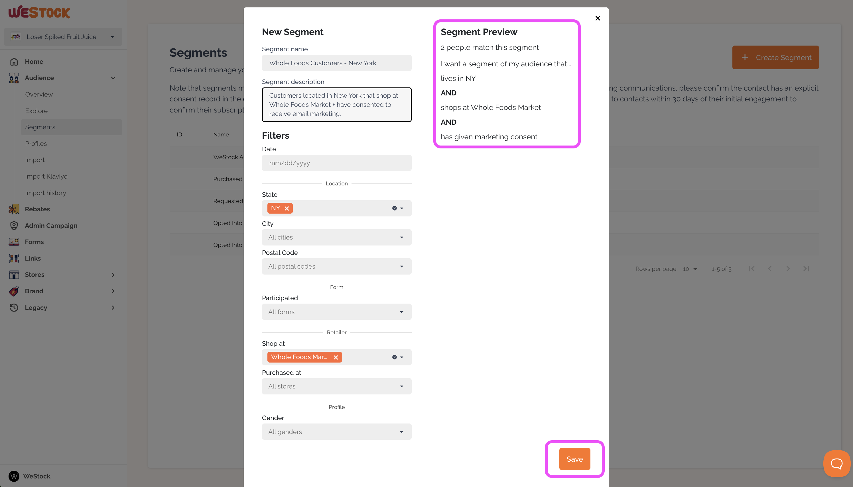 4.The Segment Preview will show how many customers match the filters and how the filters are applied.